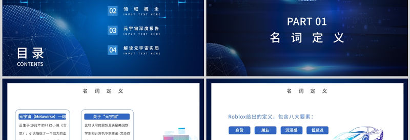 元宇宙知識講座PPT藍色科技風詳細解讀元宇宙概念模板