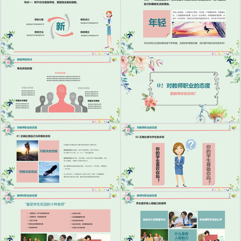 特點一:新不僅僅是指年輕,更是指全面的面貌。新教師的特點新的力量新的活力新的方法新的理念單擊添加文字單擊添加文字單擊添加文字單擊添加文字單擊添加文字單擊添加文字單擊添加文字單擊添加文字