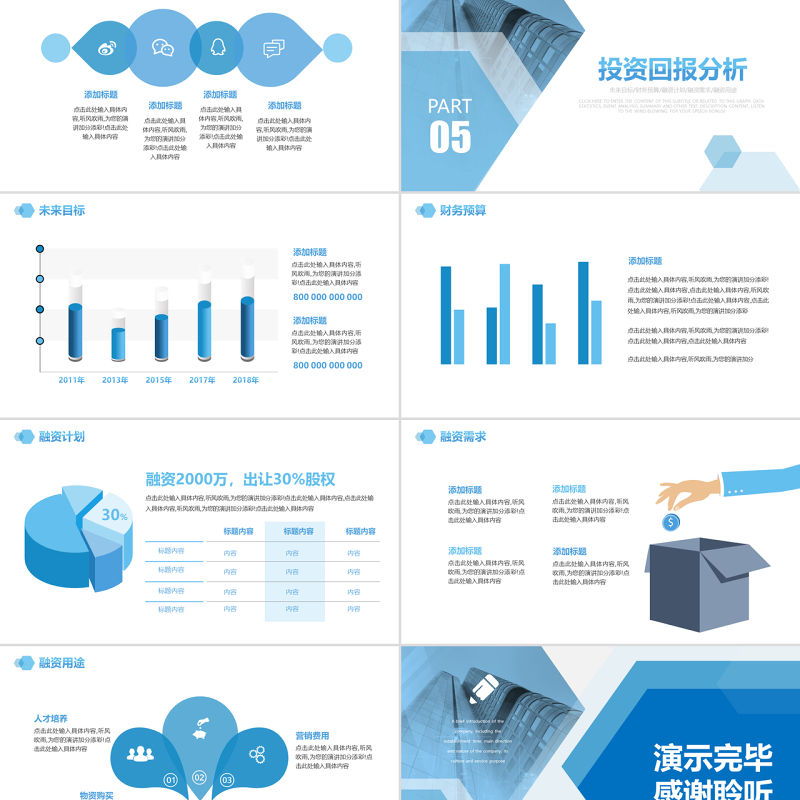 大氣框架完整商業計劃書創業融資計劃書項目方案PPT模板幻燈片包含