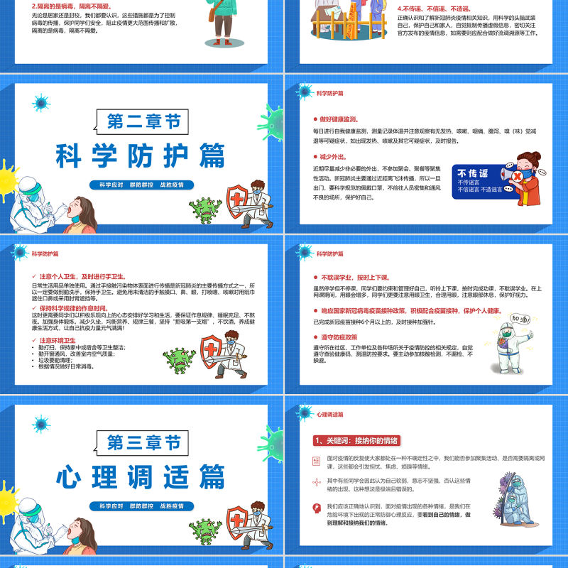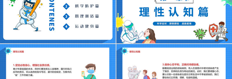 2022疫情居家科學(xué)防疫PPT卡通風(fēng)科學(xué)應(yīng)對(duì)群防群控戰(zhàn)勝疫情專題課件模板 Array