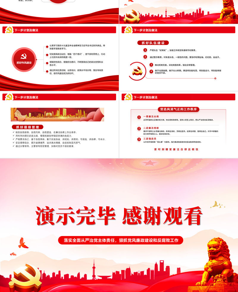 要時刻繃緊廉潔自律這根弦營造風清氣正的工作秩序1一要廉潔從政必須牢固樹立正確的權力觀、地位觀和政績觀,堅持人民至上觀點,把從嚴治黨向縱深推進。2二是廉潔用權要求干部職工必須廉潔用權,耐得住清貧、頂得住歪風、經得住誘惑、管得住自己,對手中掌握的權力常懷敬畏之心,管好權用好權。3三是強追責以中央環保督察“回頭看”為契機,強力推進我縣脫貧攻堅戰取得明顯成效。下一步計劃及做法
