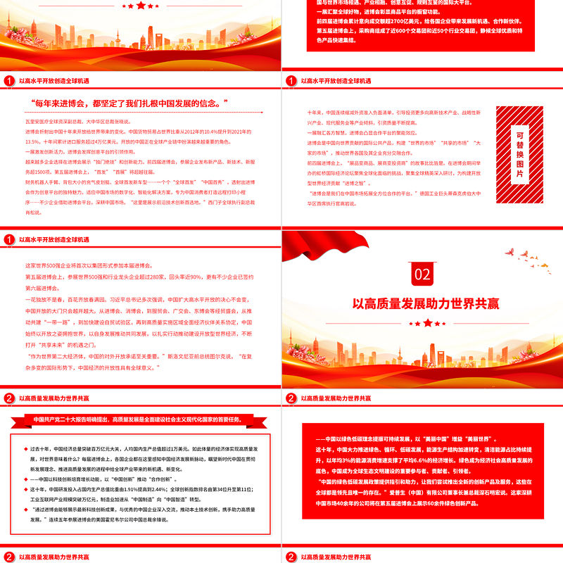 2022匯聚全球開放合作的蓬勃力量PPT紅色精美第五屆進博會的世界期待專題黨課黨建課件 Array