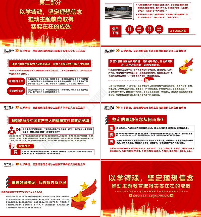 2023以學鑄魂PPT紅色精美堅定理想信念推動主題教育取得實實在在的成效黨員教育培訓黨課 Array