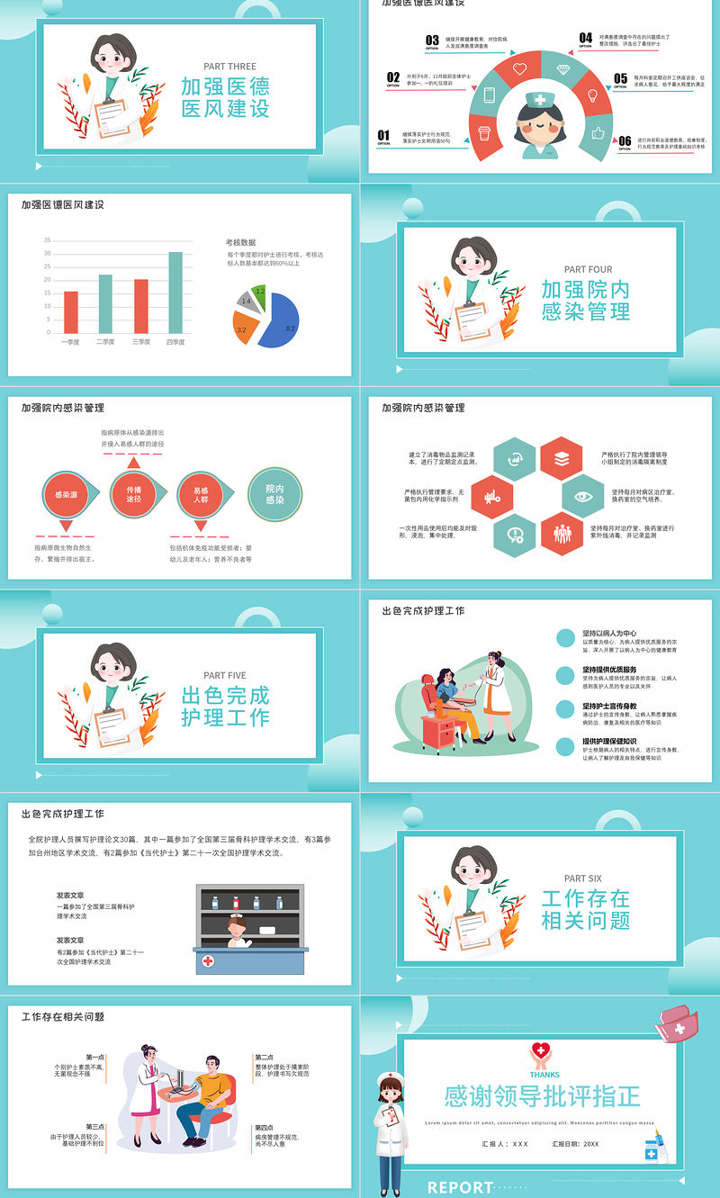 2022護(hù)士長(zhǎng)年終述職PPT清新卡通風(fēng)完整框架述職專用PPT Array