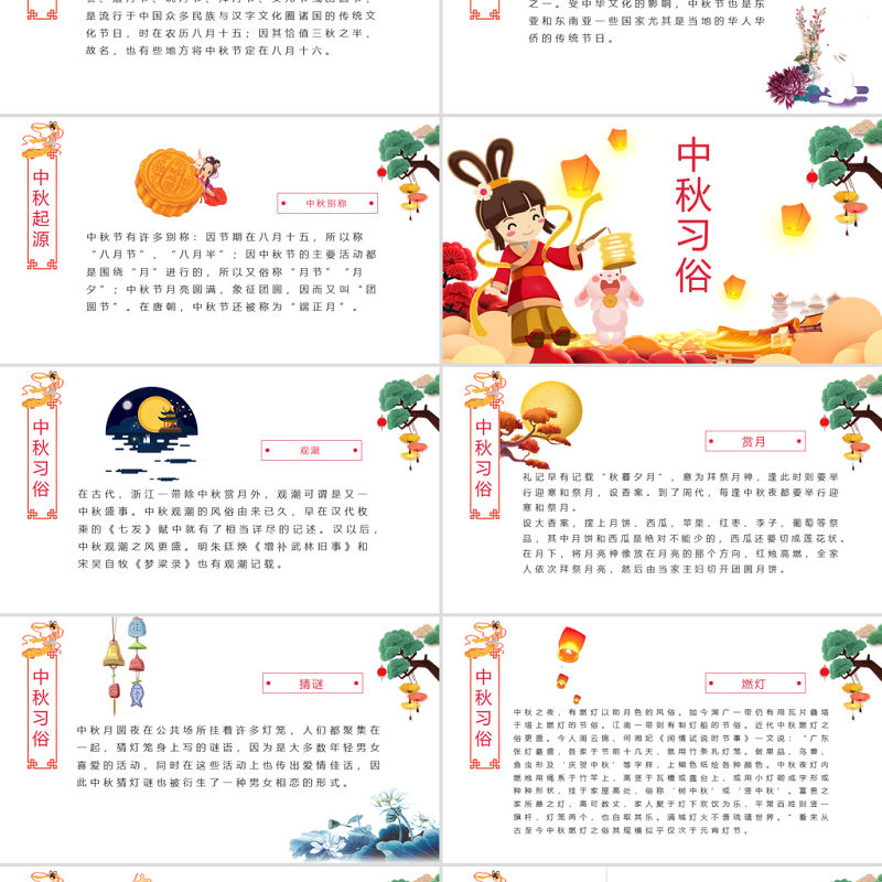 原創完整內容中國傳統節日中秋佳節賞月文化PPT模板-版權可商用