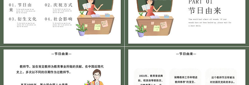 PART 01節日由來Time would heal almost all wounds. If your wounds have not been healed up, please wait for a short while.