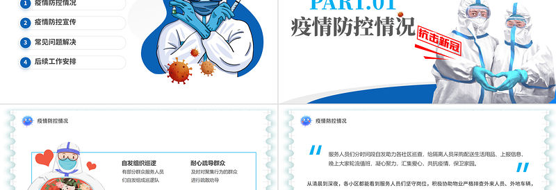 目錄/CONTENTS1疫情防控情況2疫情防控宣傳3常見問題解決4后續工作安排