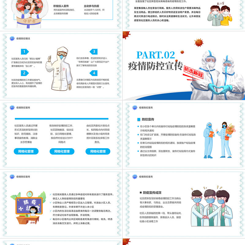 2022疫情防控倡議宣傳PPT卡通風抗擊新冠病毒疫情防控宣傳課件模板 Array