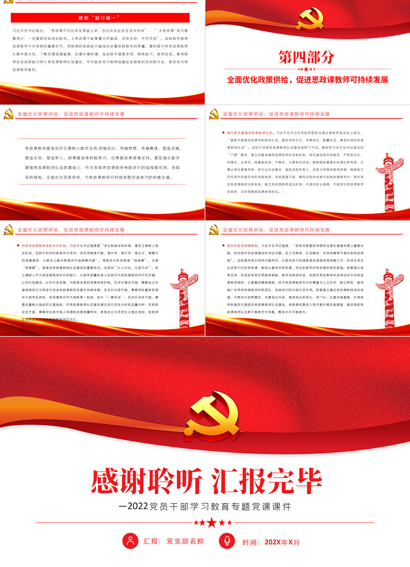 建設新時代思政課教師隊伍PPT紅色黨政風2022黨員干部學習教育專題黨課課件模板 Array