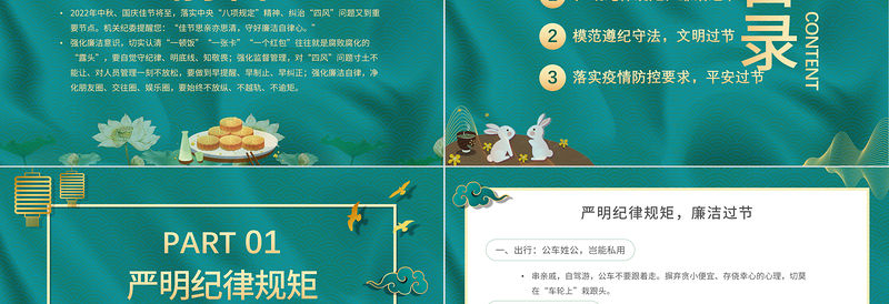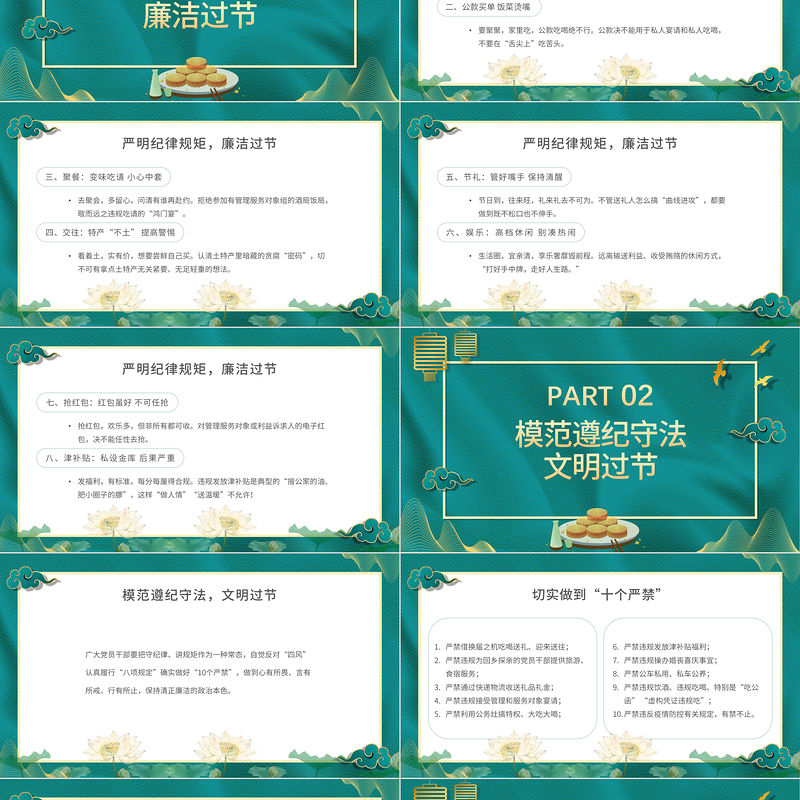 2021風清氣正過廉節PPT中國風中秋節前廉潔提醒廉政黨課課件下載包含