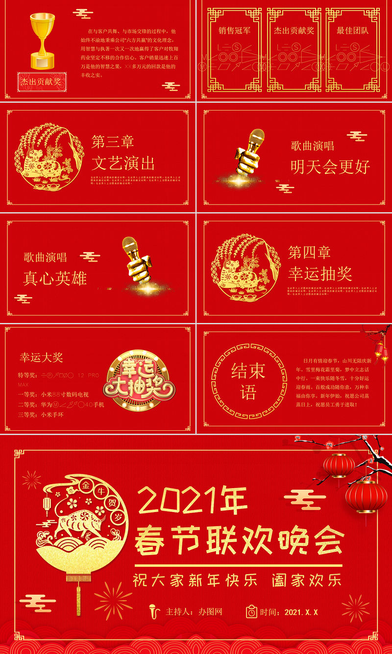 工圖網提供2021年牛年春節聯歡晚會PPT模板供會員免費下載。更多精彩黨課PPT素材,盡在工圖網。