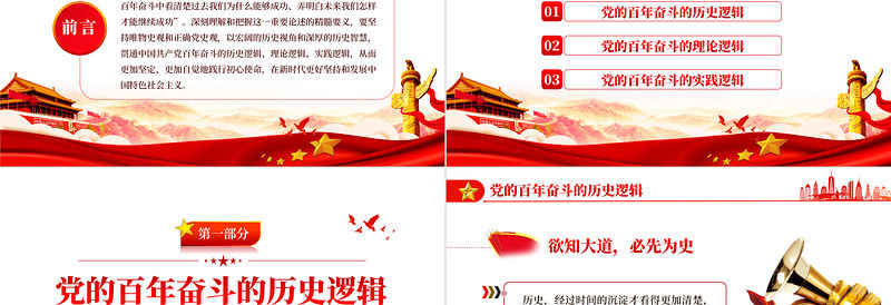 黨百年奮斗的大邏輯PPT紅色精品中國共產黨百年奮斗的歷史邏輯理論邏輯時間邏輯黨課課件
