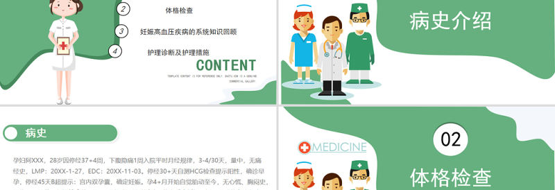 CONTENT1234TEMPLATE CONTENT IS FOR REFERENCE ONLY, BAOTU.COM IS A GENUINE COMMERCIAL GALLERY.病史介紹體格檢查護理診斷及護理措施妊娠高血壓疾病的系統知識回顧