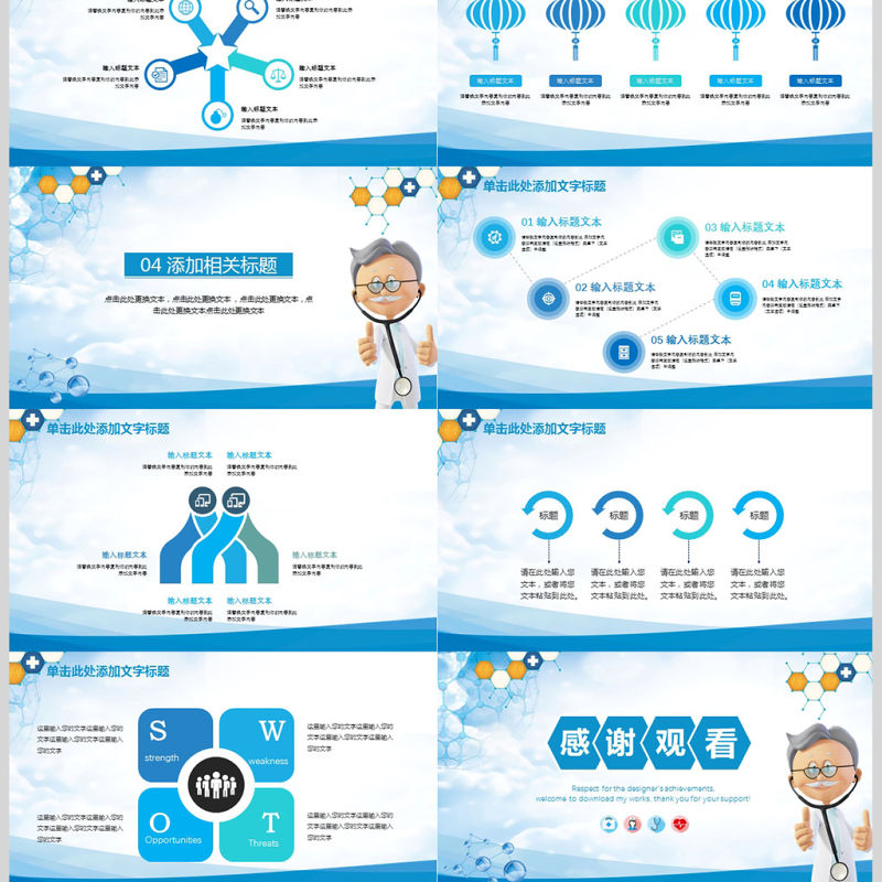 2018扁平簡約醫院護理查房教學PPT模板包含