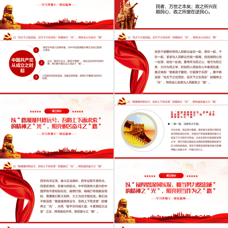新時(shí)代奮進(jìn)之路PPT紅色黨政風(fēng)黨員干部學(xué)習(xí)教育專題黨課課件模板 Array