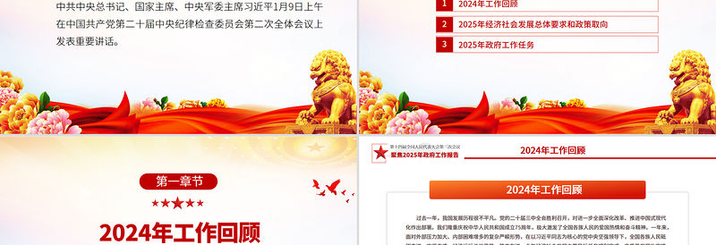 一圖速覽2025政府工作報告PPT紅色精美學習兩會精神黨課課件 Array
