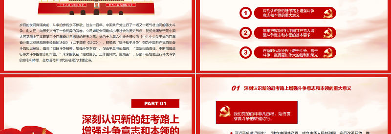 走好新的趕考之路必須不斷增強(qiáng)進(jìn)行偉大斗爭的意志和本領(lǐng)PPT紅色簡約風(fēng)黨員干部深入學(xué)習(xí)《決議》專題黨課課件模板 走好新的趕考之路 增強(qiáng)進(jìn)行偉大斗爭的意志和本領(lǐng) 簡約風(fēng) 紅色ppt 黨課ppt