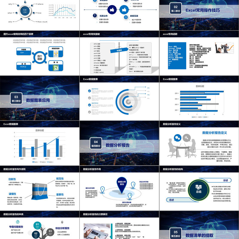 工圖網(wǎng)提供藍(lán)色科技風(fēng)數(shù)據(jù)分析師培訓(xùn)財(cái)務(wù)分析報(bào)告數(shù)據(jù)圖表培訓(xùn)PPT模板供會(huì)員免費(fèi)下載。更多精彩黨課PPT素材,盡在工圖網(wǎng)。