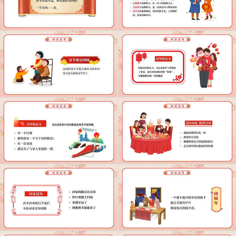回家過年團(tuán)團(tuán)圓圓PPT新年新春安全出行平安回家過新年下載