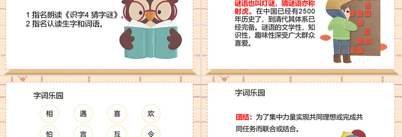 2022猜字謎PPT卡通風識字第4課小學一年級語文下冊人教版教學課件