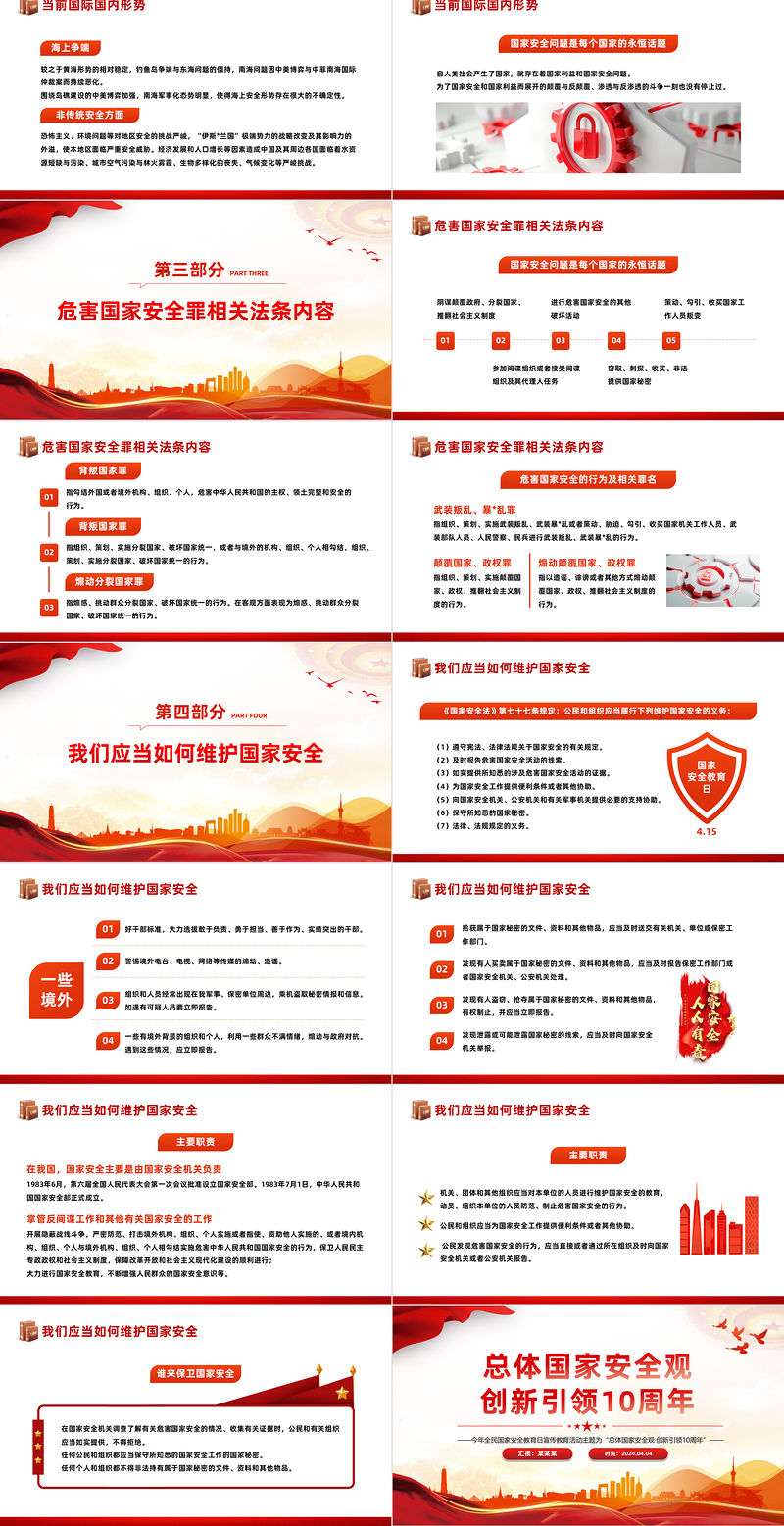 總體國家安全觀創新引領10周年PPT紅色精美全民國家安全教育日課件 Array