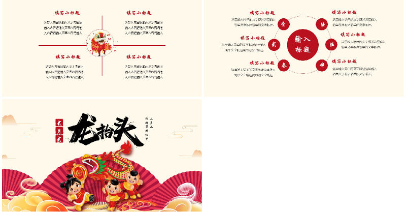原創紅色二月二龍抬頭活動策劃PPT模板-版權可商用