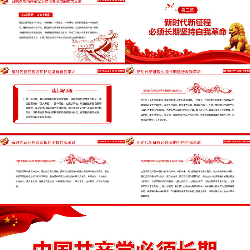 工圖網提供中國共產黨必須長期堅持自我革命PPT紅色大氣風黨員干部深入學習《決議》專題黨課課件供會員免費下載。更多精彩黨課PPT素材,盡在工圖網。