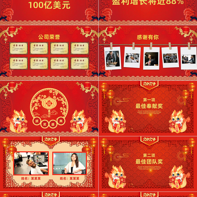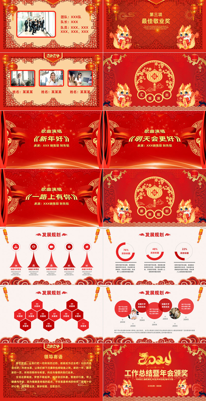 中國(guó)風(fēng)喜慶工作總結(jié)暨年會(huì)頒獎(jiǎng)PPT2024年龍年年終總結(jié)新年計(jì)劃下載 Array