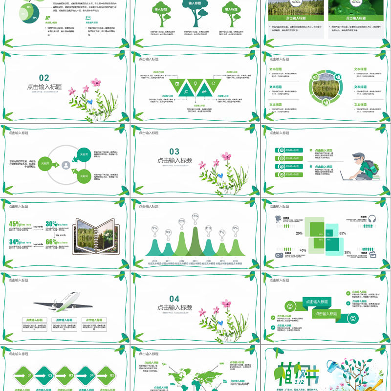 原創綠色小清新春天春季春暖花開植樹PPT環保-版權可商用包含