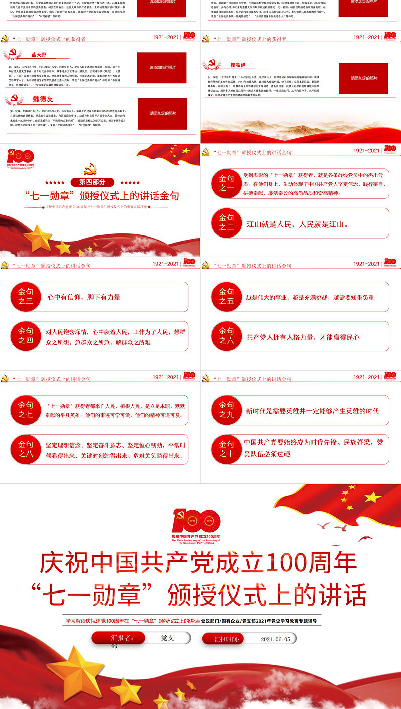 2021 學習解讀 慶祝建黨100周年 “七一勛章” 頒授儀式上的講話 PPT 黨支部 2021年 黨史學習 教育專題 輔導黨課 課件 71黨課 建黨節 建黨100 建黨百年 建黨100年 黨史 建黨史 黨史課件 黨史模板 建黨100周年 七一黨史 七一建黨 學黨史 講話金句 Array