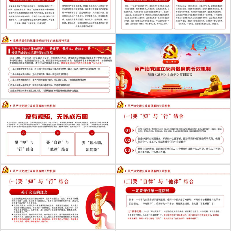 從嚴治黨建立反腐倡廉的長效機制(一)要“知”與“行”結合思想是行動的先導,貫徹落實《準則》《條例》這部規范黨員干部行為的重要基礎性法規,首先必須要抓好對《準則》《條例》的學習,要逐條逐句學,原原本本學,全面、透徹、深入地領會其精神實質,筑牢拒腐防變的思想防線僅是知道明白該做什么,不該做什么還不夠,還必須將形成的理念用于實踐,做到知行合一,在工作、生活和社會交往中自覺踐行要強化信念意識,做政治上的明白人,心中要始終清楚什么人可交,什么人不可交;什么事可做,什么事不可做。