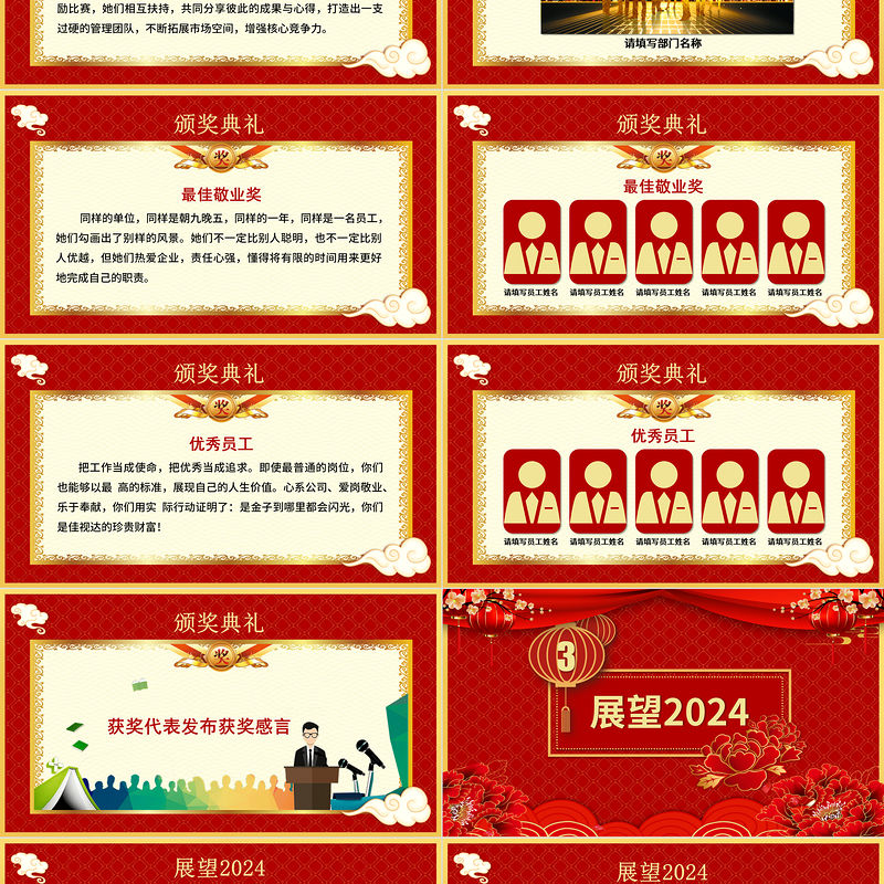 2024龍年大吉PPT創意精美迎新春年終頒獎盛典企業年會實用模板 Array