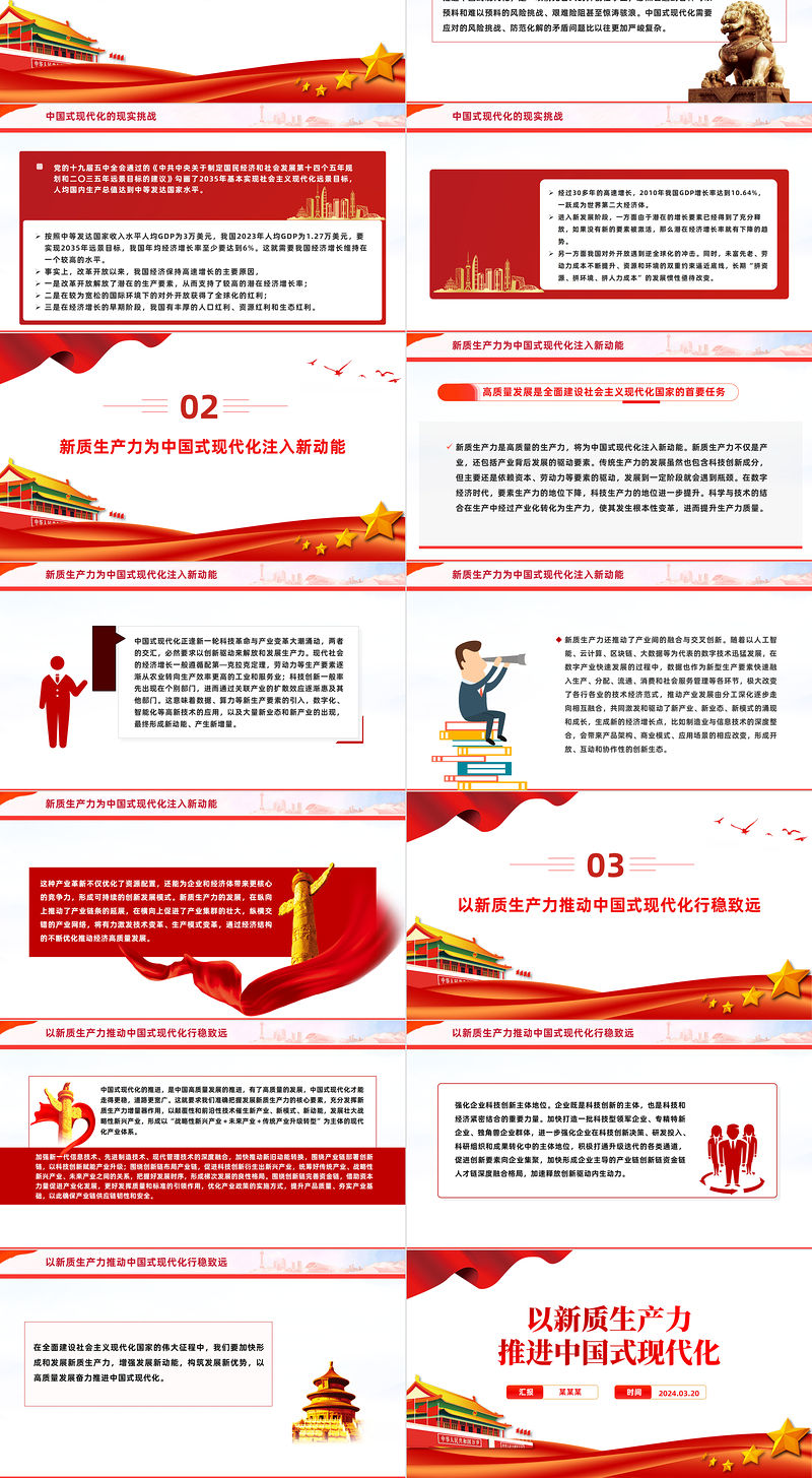 以新質生產力推進中國式現代化PPT精美黨政風2024兩會系列評論課件模板