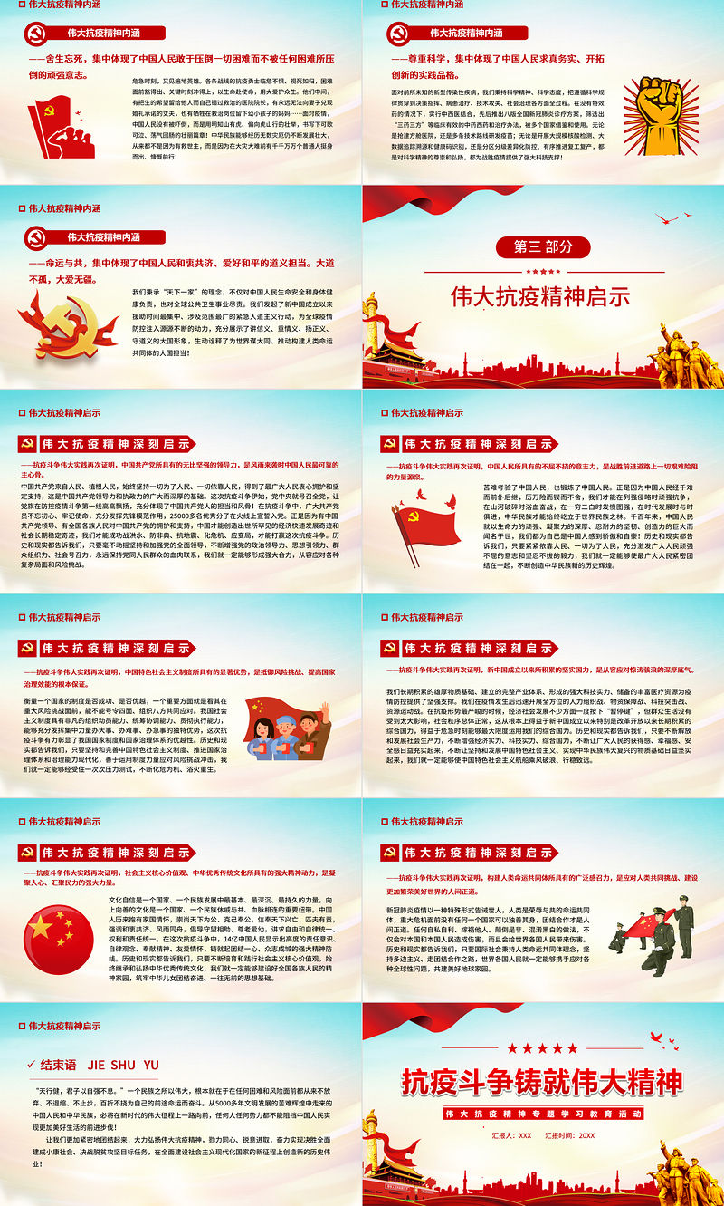 工圖網(wǎng)提供抗疫斗爭(zhēng)鑄就偉大精神PPT簡(jiǎn)潔時(shí)尚弘揚(yáng)抗疫精神專題學(xué)習(xí)教育課件供會(huì)員免費(fèi)下載。更多精彩黨課PPT素材,盡在工圖網(wǎng)。