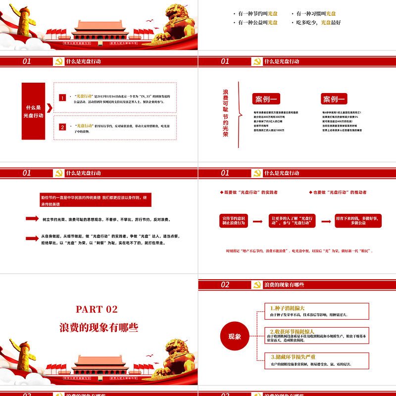 拒絕舌尖上的浪費,杜絕餐飲浪費,PPT,糧食安全,黨課,舌尖上的浪費,餐飲浪費,節約,黨支部,拒絕餐飲浪費,制止浪費,保護糧食安全,學習心得,體會,舉措,措施,動態PPT,浪費,堅決制止餐飲浪費行為,紅色,黨政風,節約糧食,懷危機意識,保大國糧倉,制止,餐飲浪費,黨課主題教育ppt模板 Array
