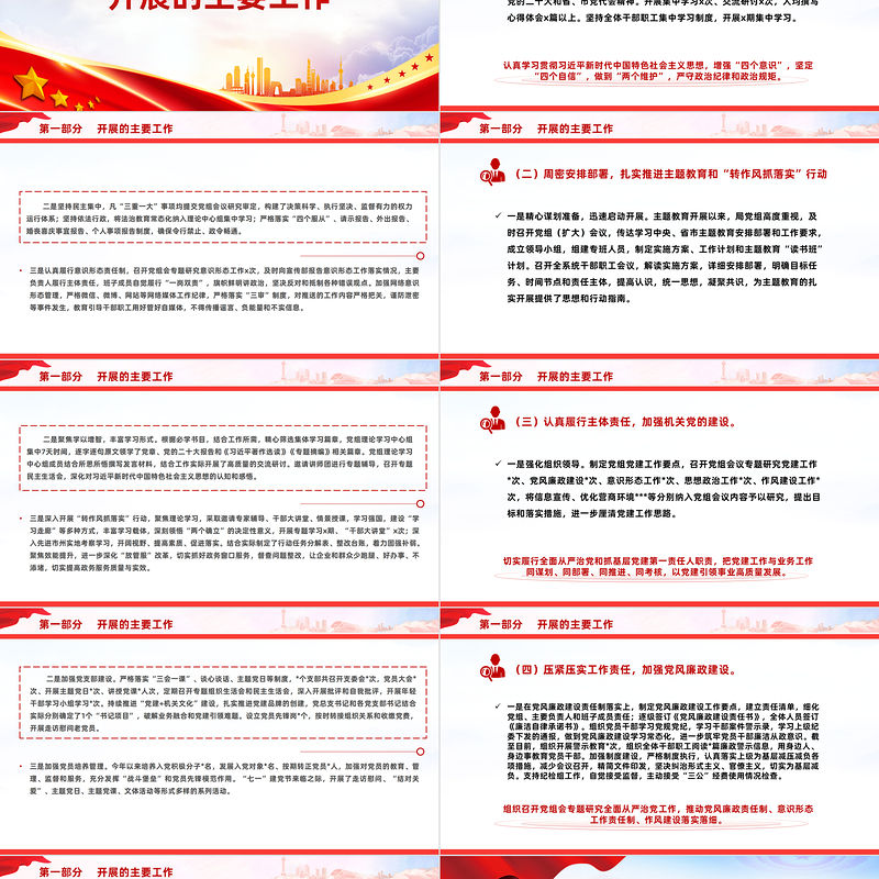 黨建工作情況匯報PPT紅色大氣全面從嚴治黨黨風廉政建設課件模板