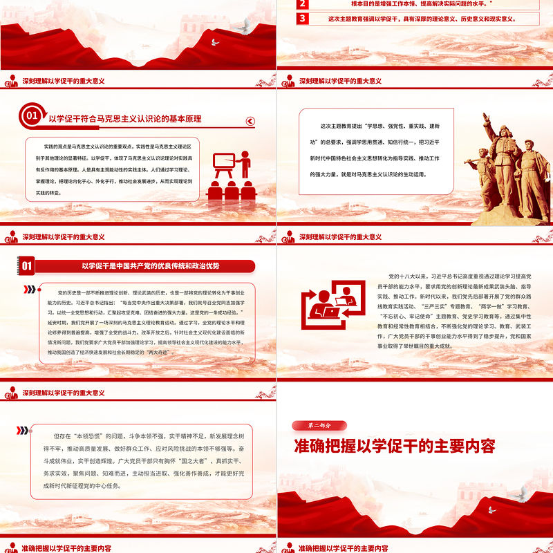 以學促干擔當有為創偉業PPT紅色精美扎實開展主題教育提高解決實際問題的水平微黨課