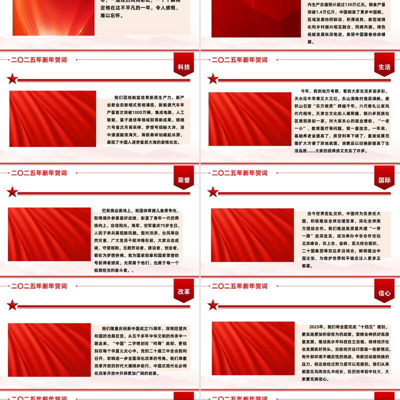 主席二〇二五年新年賀詞PPT大氣黨建風2025年賀詞解讀學習黨課課件 Array