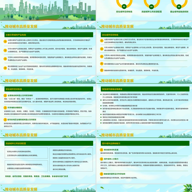 010203040506統籌優化城市國土空間規劃、產業布局和人口分布,提升城市可持續發展能力,建設宜業宜居、富有特色、充滿活力的現代城市。分類引導城市產業布局優化城市空間布局加強城市基礎設施建設改進城市公共資源配置提升城市品質和魅力健全城市投融資機制