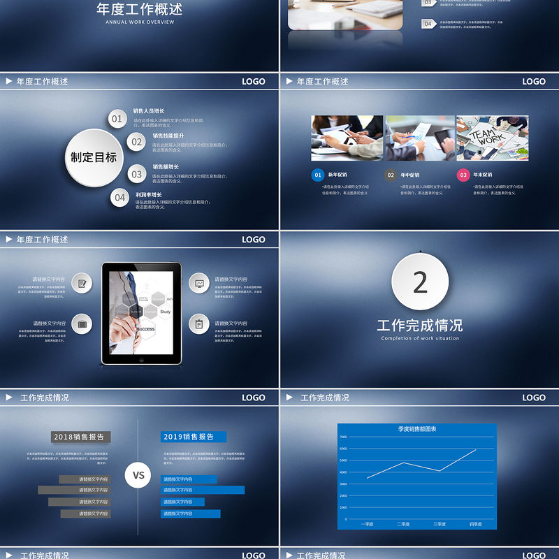 2019年紅色工作總結工作匯報PPT模板幻燈片包含