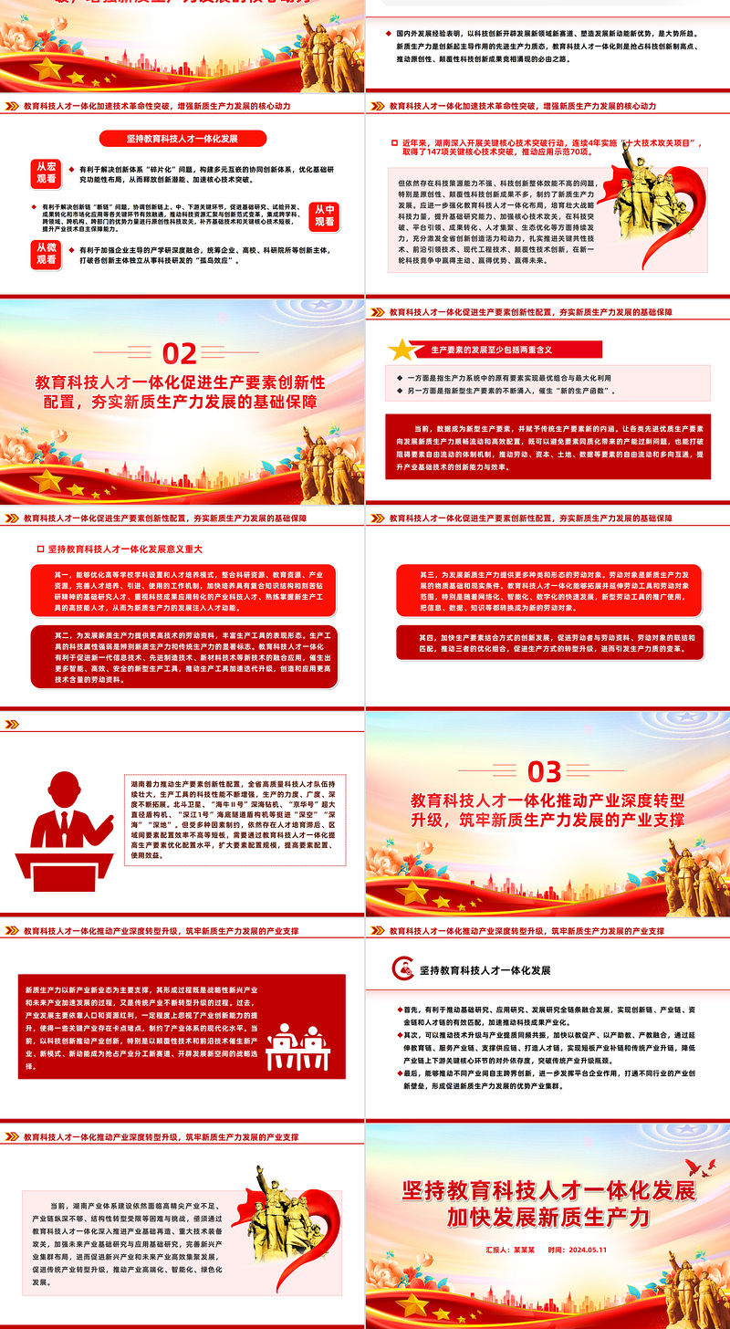 堅持教育科技人才一體化發展加快發展新質生產力PPT黨政風黨員干部學習教育黨課課件 Array