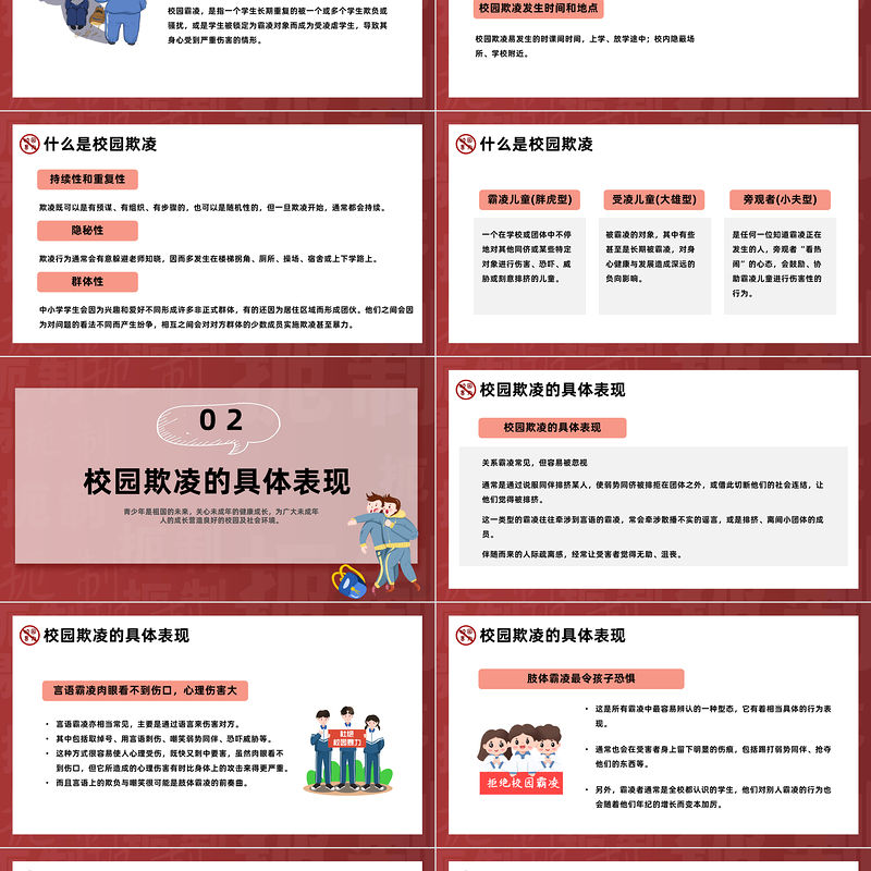 工圖網提供2023防校園欺凌為成長護航PPT卡通插畫風中小學預防校園欺凌家長會主題班會課件模板供會員免費下載。更多精彩黨課PPT素材,盡在工圖網。