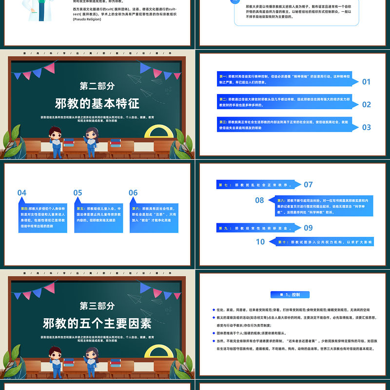 崇/尚/科/學/遠/離/邪/教/培/訓/課/件邪教的五個主要因素第三部分獲取信徒無條件效忠和服從并使之放棄社會共同價值觀從而對社會、個人自由、健康、教育和民主體制造成危害,即為邪教