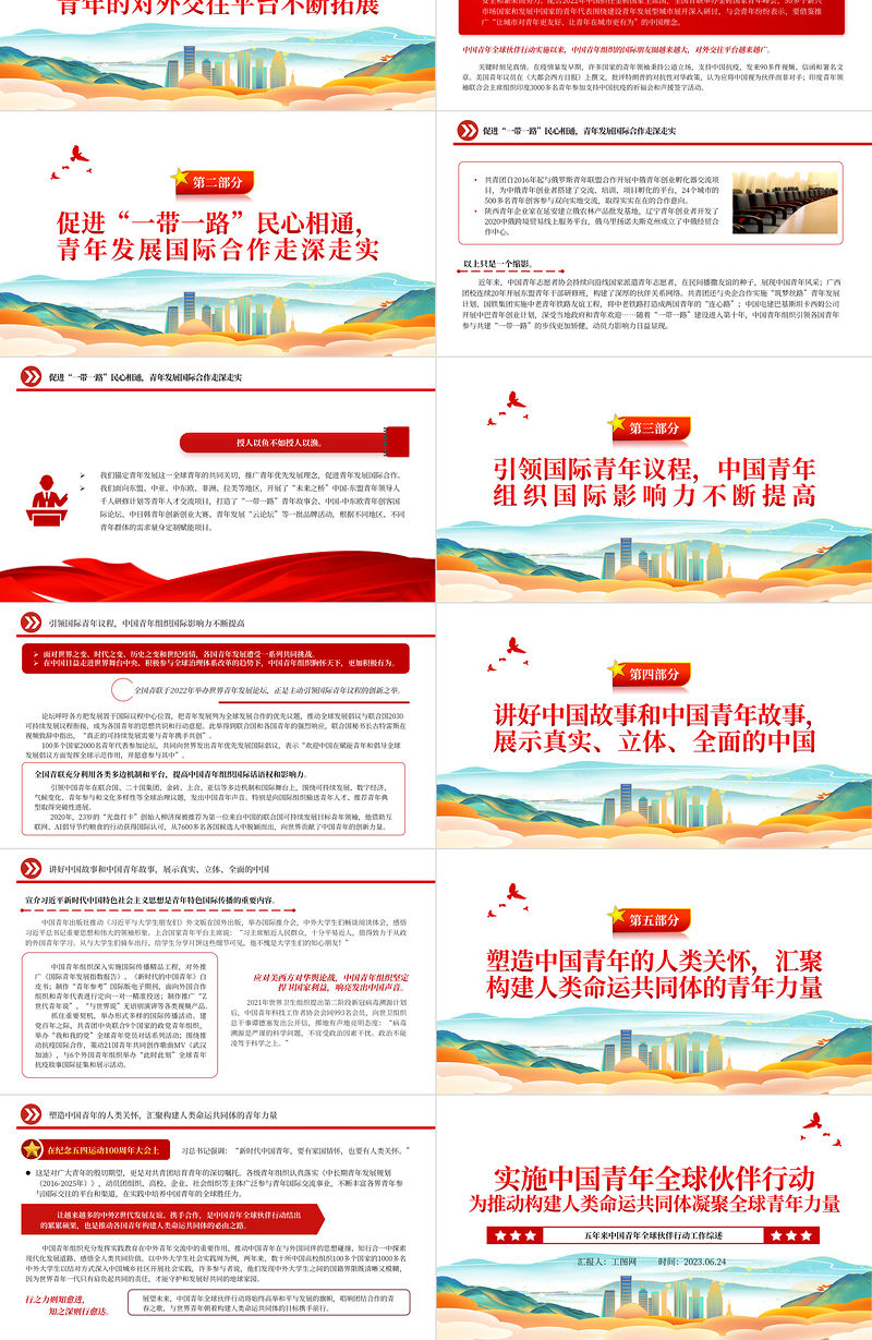 實(shí)施中國青年全球伙伴行動 為推動構(gòu)建人類命運(yùn)共同體凝聚全球青年力量匯報(bào)人:工圖網(wǎng) 時(shí)間:2023.06.24五年來中國青年全球伙伴行動工作綜述