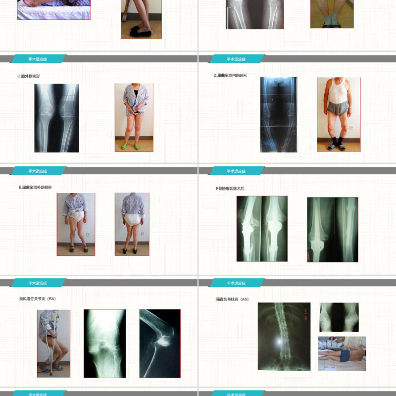 1、退行性骨關節炎(OA)2、類風濕性關節炎(RA)3、強直性脊柱炎(AS)4、創傷性關節炎5、膝關節結核強直后6、骨腫瘤切除術后手術適應癥