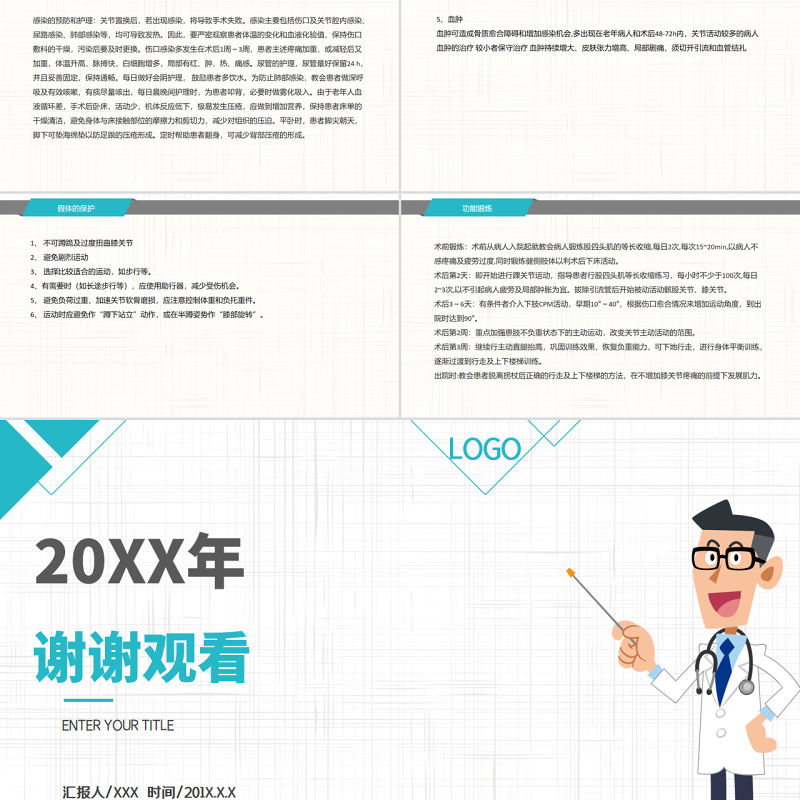 Enter your title膝關節置換術后護理查房20XX年LOGO匯報人/XXX 時間/201X.X.X