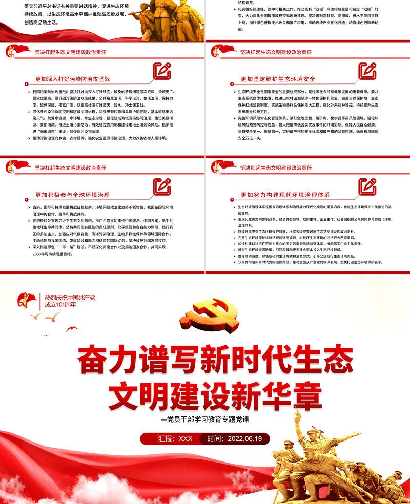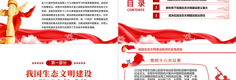 奮力譜寫新時代生態(tài)文明建設新華章PPT紅色大氣風黨員干部學習教育專題黨課 Array