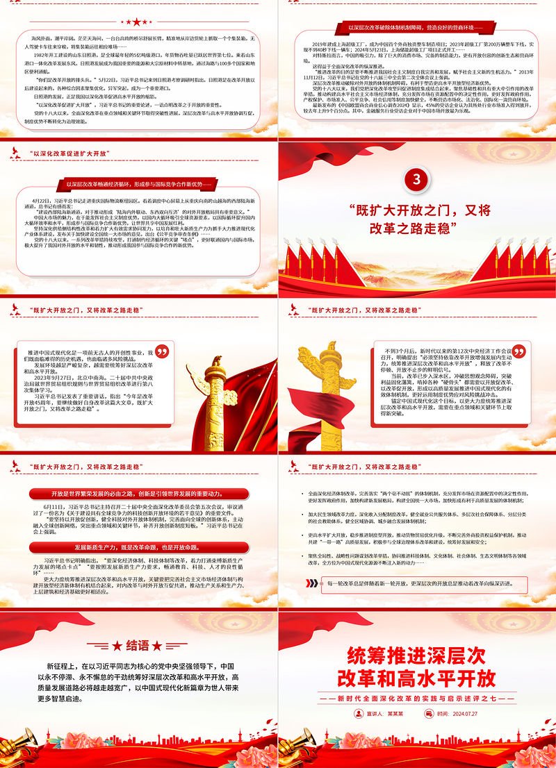 工圖網提供統籌推進深層次改革和高水平開放PPT大氣簡潔新時代全面深化改革的實踐與啟示述評之七供會員免費下載。更多精彩黨課PPT素材,盡在工圖網。