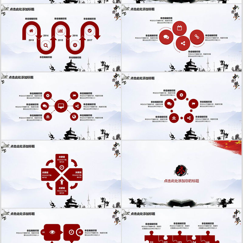 中國(guó)風(fēng)片頭,中國(guó)夢(mèng)片頭,水墨片頭,黨建ppt,政府匯報(bào) Array