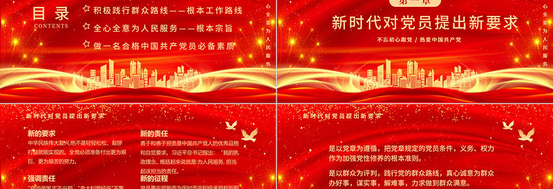 目錄全心全意為人民服務(wù)新時(shí)代對黨員提出新要求積極踐行群眾路線——根本工作路線全心全意為人民服務(wù)——根本宗旨做一名合格中國共產(chǎn)黨員必備素質(zhì)CONTENTS